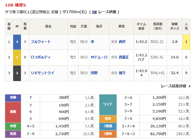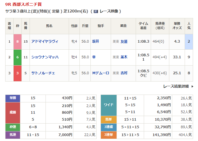 ◎ショウナンマッハ(9人気)2着 複勝860円 - 8/20【小倉10R】薩摩ステークス