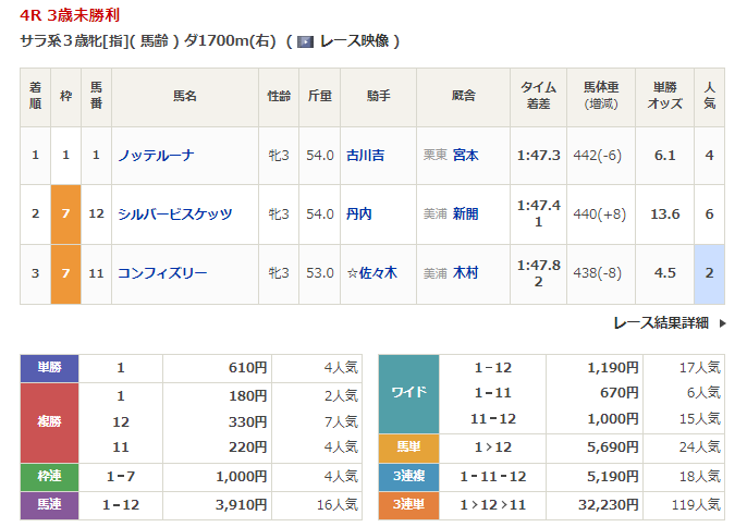 ◎シルフィードレーヴ(5人気)3着 複勝330円