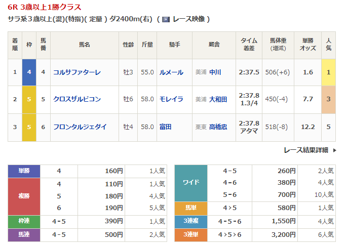 ◎フロンタルジェダイ(5人気)3着 複勝190円