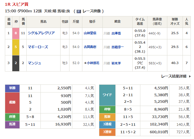 - 9/15【川崎1R】スピア賞