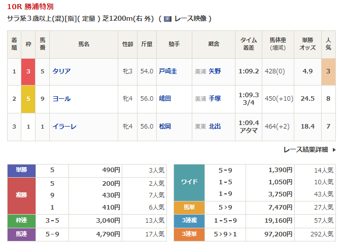 - 9/30【中山10R】勝浦特別