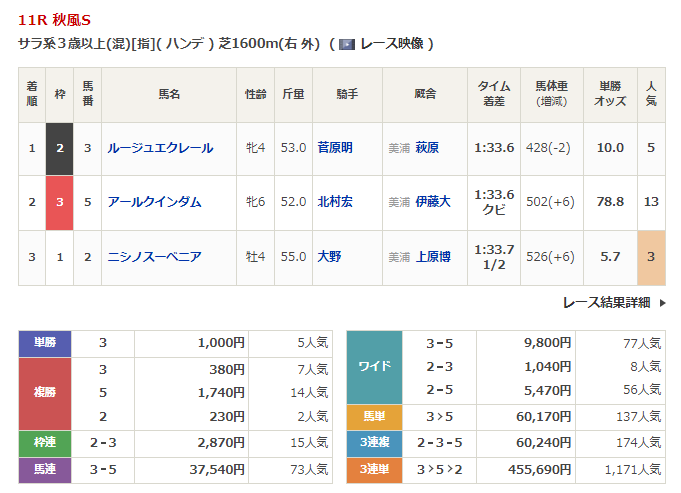 - 9/30【中山11R】秋風ステークス