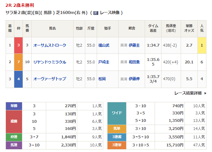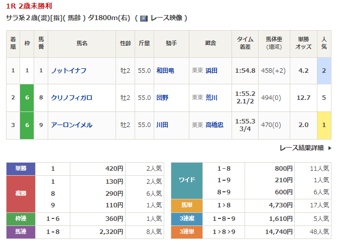 - 10/1【中山2R】2歳未勝利