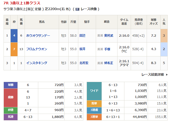 ◎ナムラフッカー(7人気)1着 単勝10,550円、複勝800円