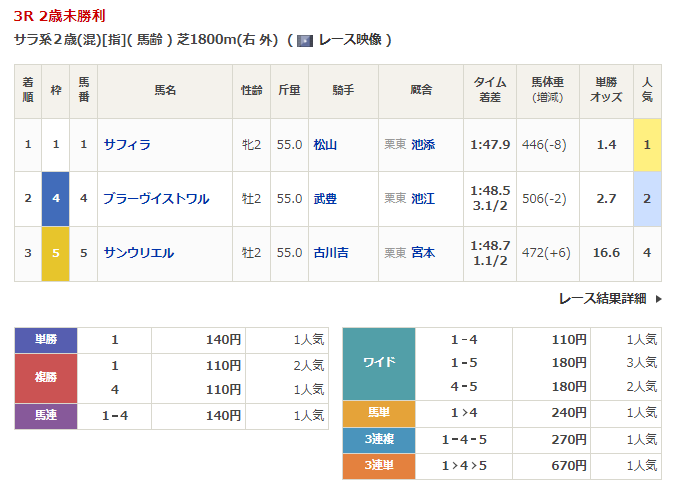 - 9/30【中山4R】2歳未勝利