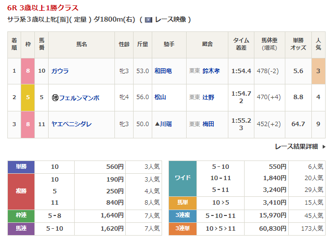 - 9/30【阪神6R】3歳以上1勝クラス