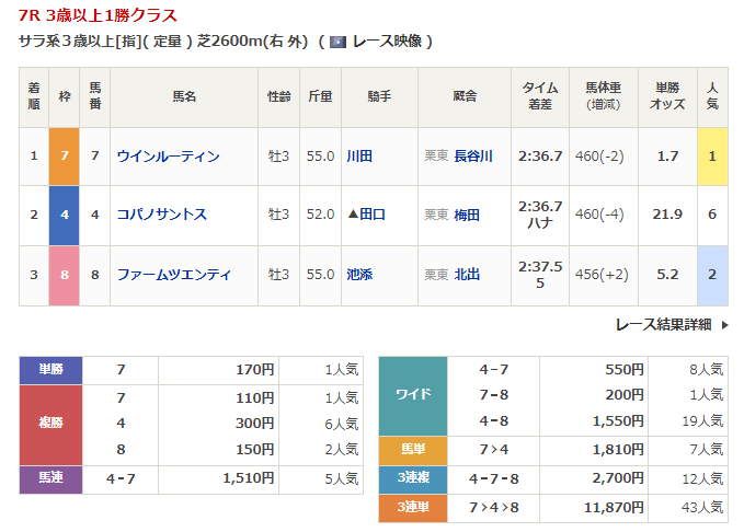 - 10/1【中山7R】3歳以上1勝クラス