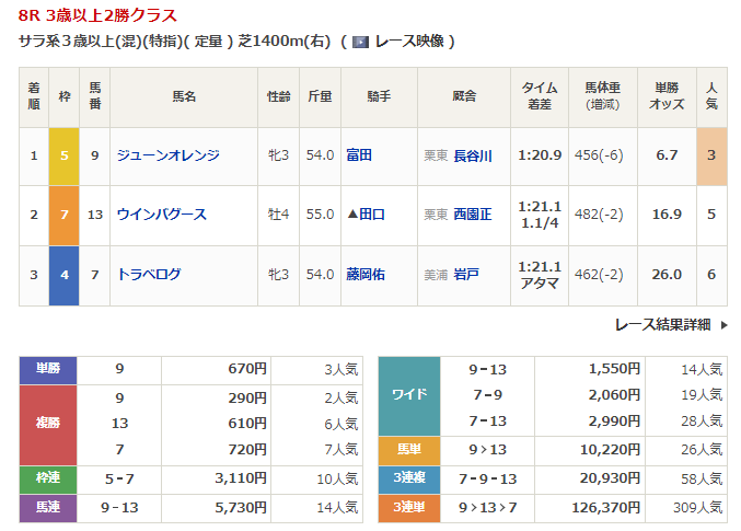 - 9/30【阪神8R】3歳以上2勝クラス