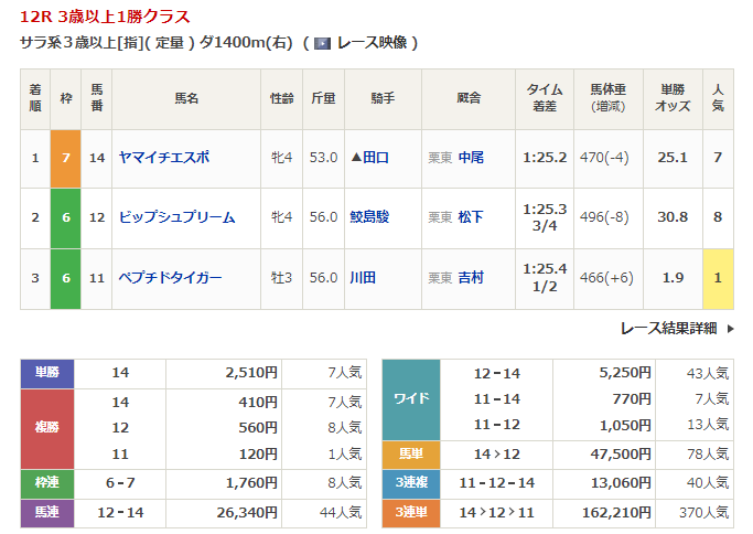 ◎ヤマイチエスポ(7人気)1着 単勝2,510円、複勝410円