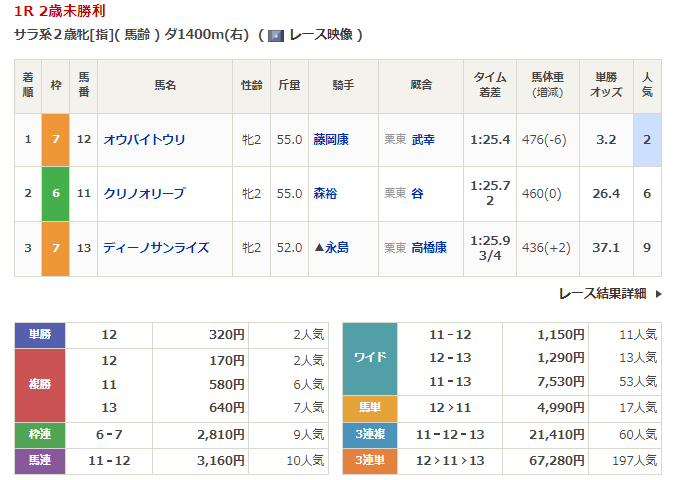 ◎ウエストオーバー(2人気)2着 複勝180円
