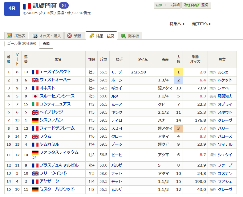 海外競馬の穴馬的中結果