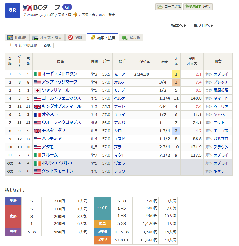 - 11/5【サンタニア8R】ブリーダーズカップターフ