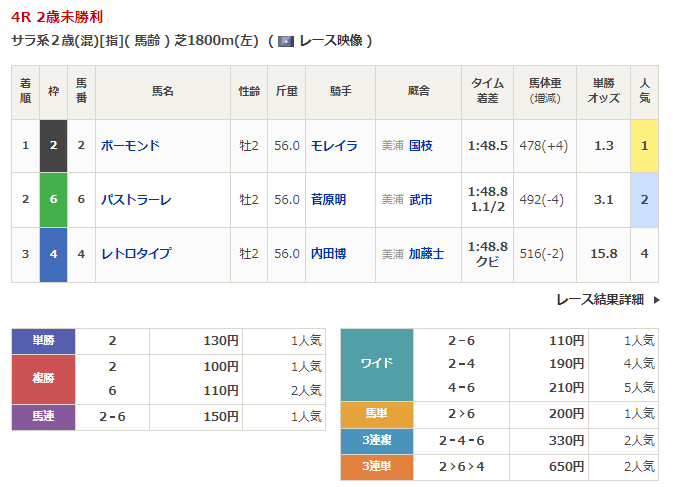 ◎レトロタイプ(4人気)3着 - 11/5【東京5R】2歳新馬
