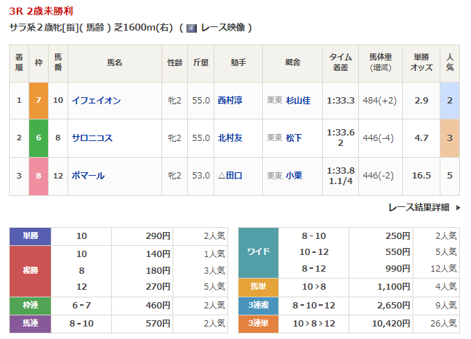 ◎ポマール(5人気)3着 複勝270円 - 11/4【京都5R】2歳新馬