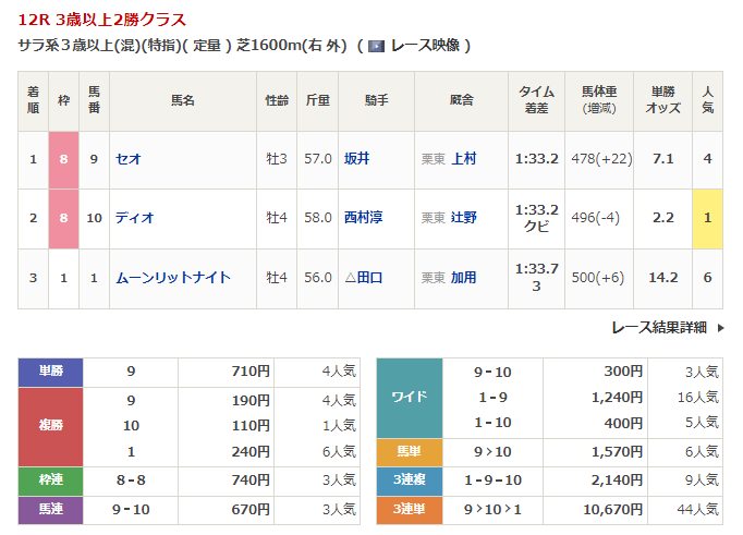 ◎セオ(4人気)1着 単勝710円、複勝190円