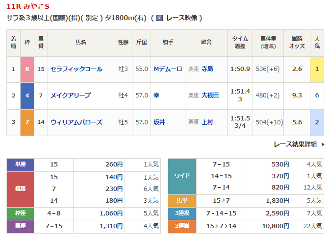 ◎シゲルファンノユメ(6人気)2着 複勝290円 - 11/5【京都11R】みやこステークス