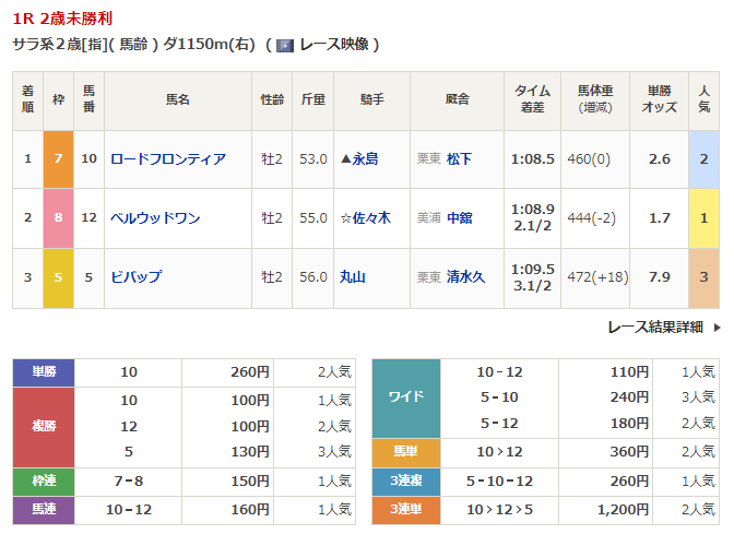 ◎セオ(4人気)1着 単勝710円、複勝190円 - 11/4【福島1R】2歳未勝利