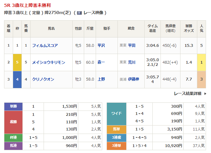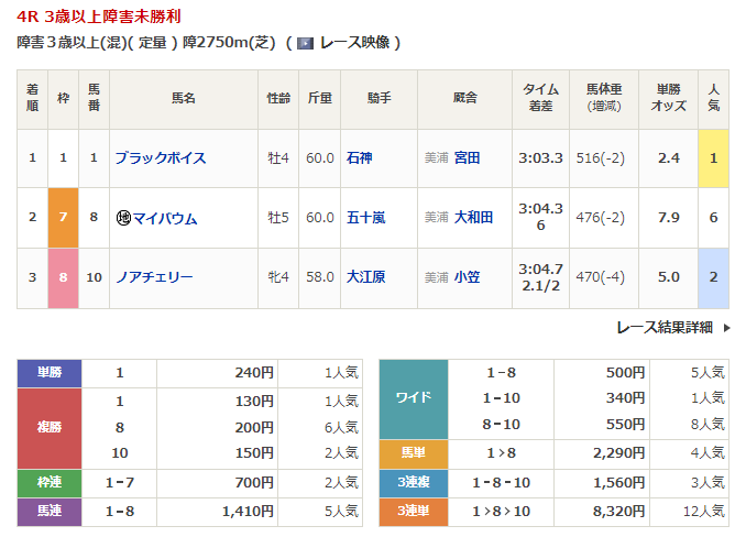 ◎マイバウム(6人気)2着 複勝200円 - 11/5【福島5R】3歳以上障害未勝利
