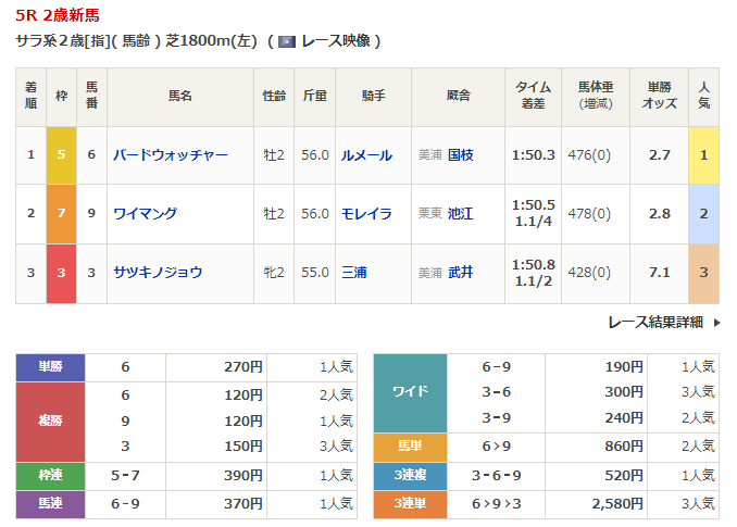 ◎アマミツツキ(3人気)2着 複勝350円 - 11/5【京都5R】2歳新馬