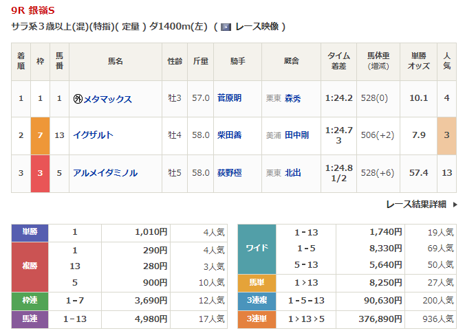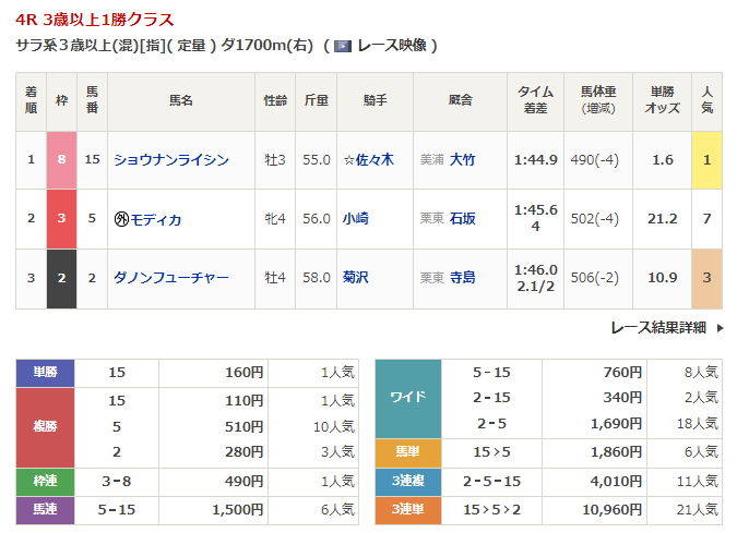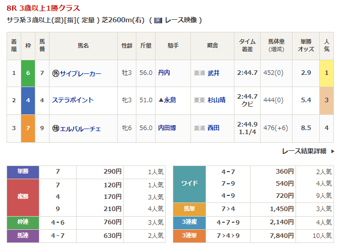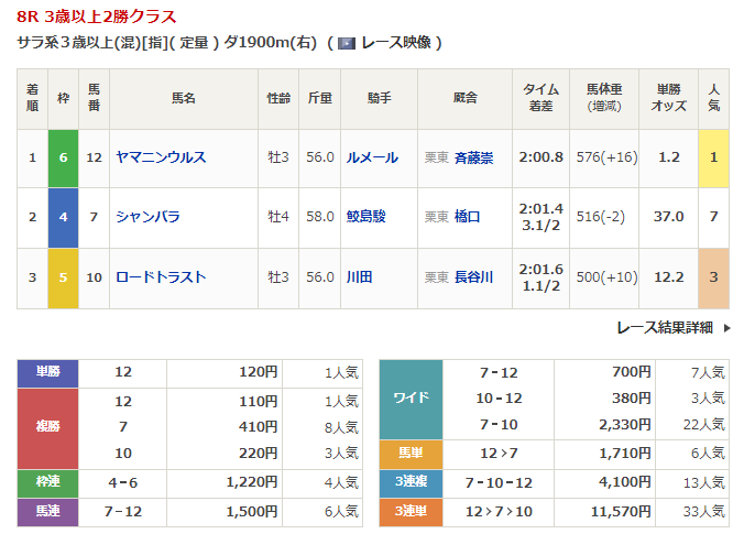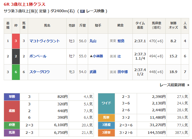 ◎マコトヴィクラント(4人気)1着 単勝820円、複勝320円