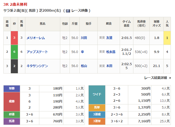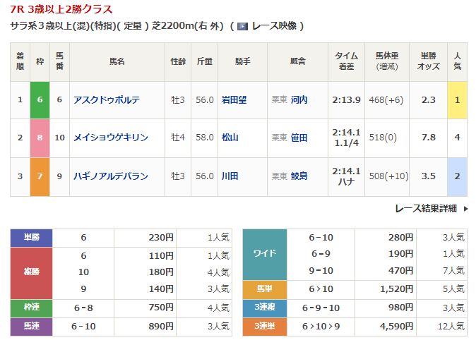 ◎メイショウゲキリン(4人気)2着 複勝180円