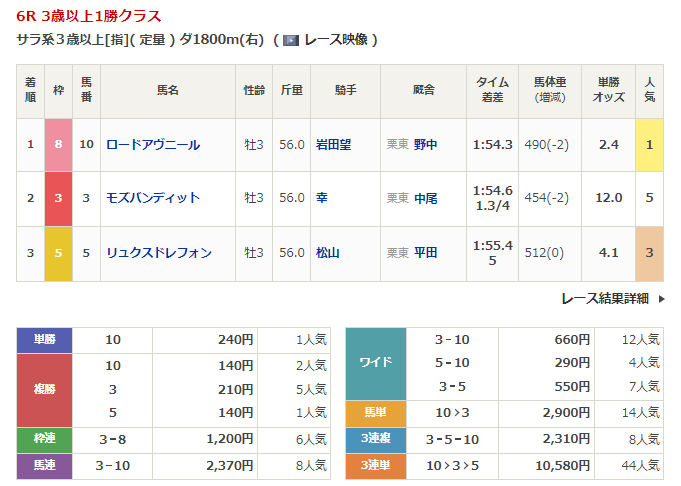 ◎ロードアヴニール(1人気)1着 単勝240円、複勝140円