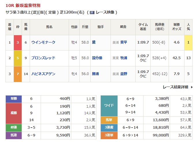 ◎グレイトゲイナー(10人気)1着 単勝2,770円、複勝730円 - 11/5【福島12R】3歳以上1勝クラス
