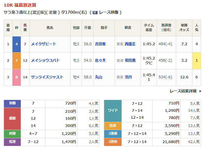 | 11/11 福島 | 12R | 7R | 58.3% |