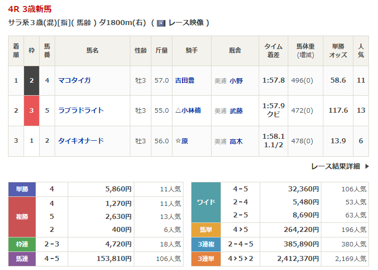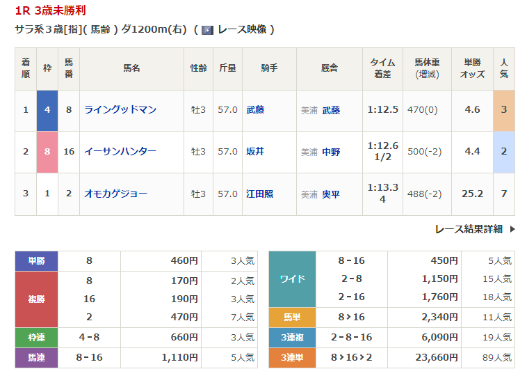 ◎ゴールドアローン(8人気)2着 複勝890円 - 1/6【中山4R】3歳新馬