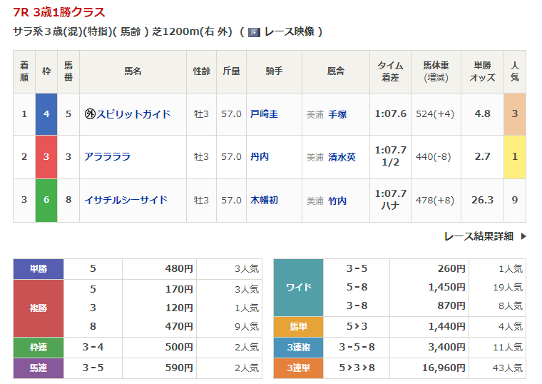 ◎イサチルシーサイド(9人気)3着 複勝470円