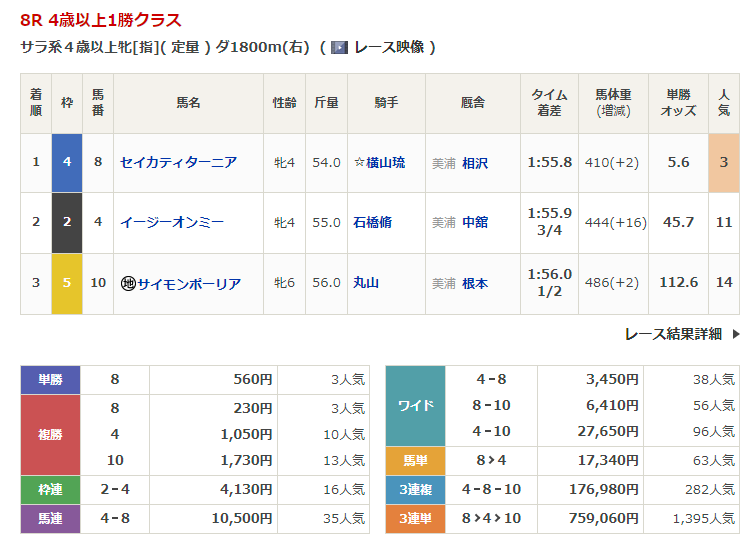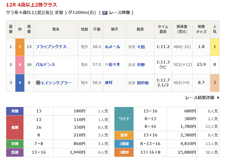 | 1/8 京都 | 12R | 3R | 25.0% |