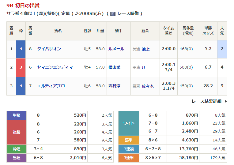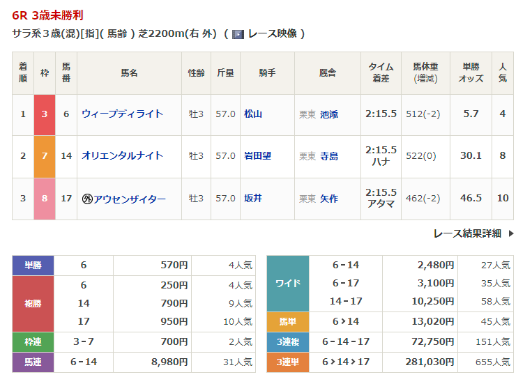 ◎オリエンタルナイト(8人気)2着 複勝790円