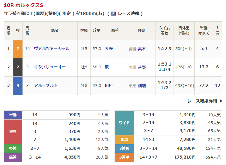 ◎サイモンポーリア(14人気)3着 複勝1,730円
