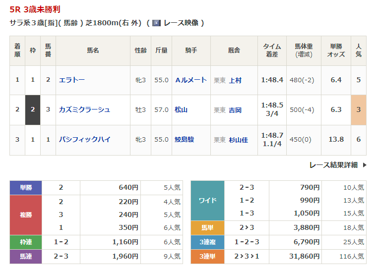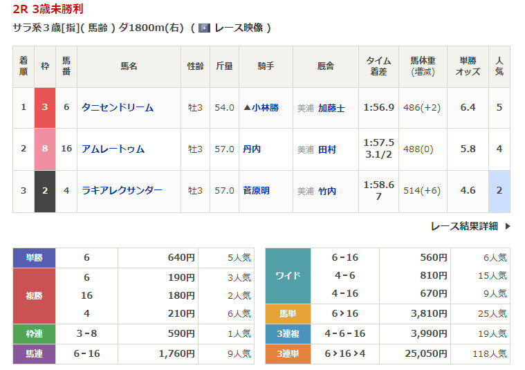 ◎ラキアレクサンダー(2人気)3着 複勝210円