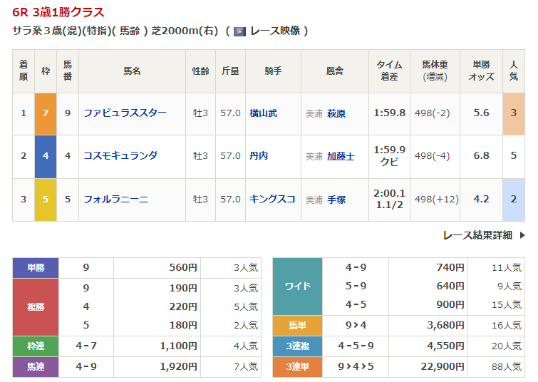 ◎グロリアラウス(6人気)1着 単勝2,320円、複勝430円