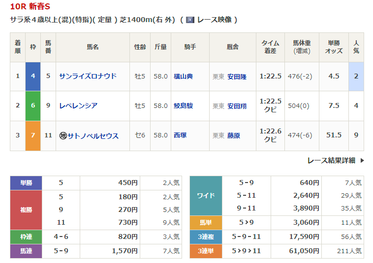 ◎ノーブルブランカ(6人気)2着 複勝430円