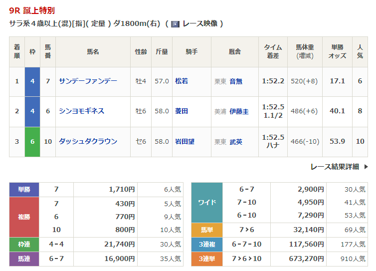 ◎ケイアイサンデラ(3人気)2着 複勝170円