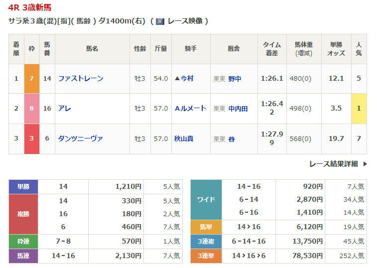 ◎ゴールドアローン(8人気)2着 複勝890円 - 1/6【中山4R】3歳新馬