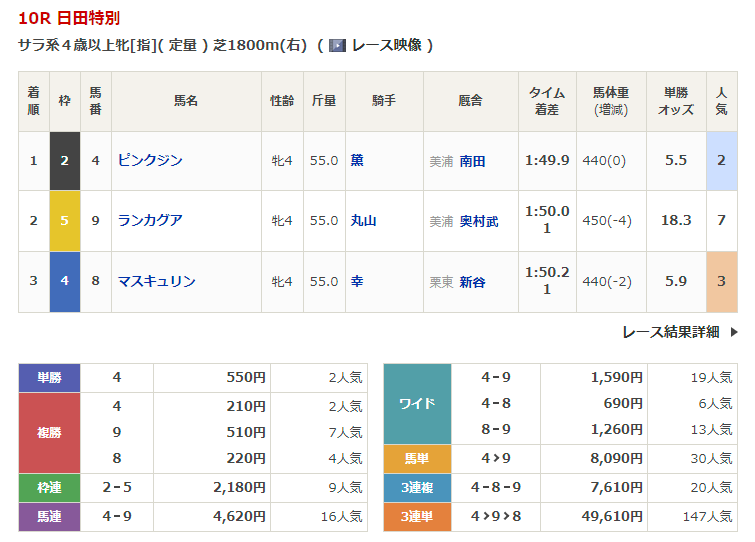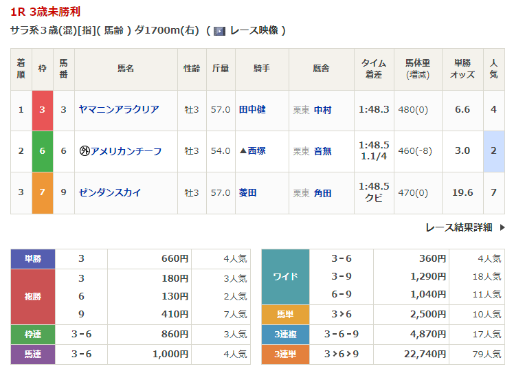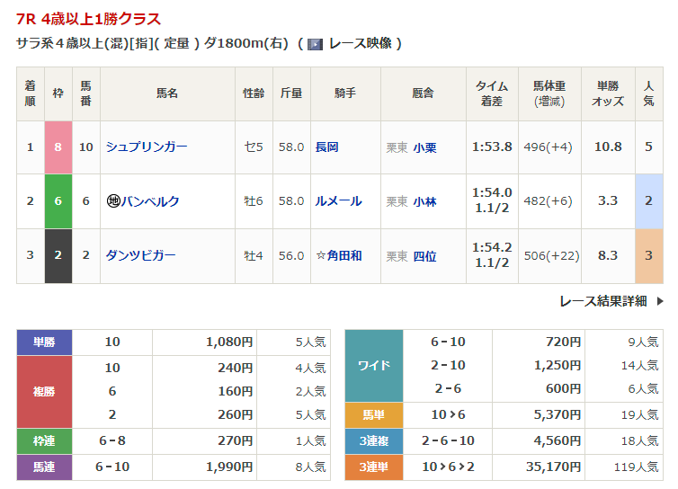 ◎シンゼンシャイン(9人気)3着 複勝420円