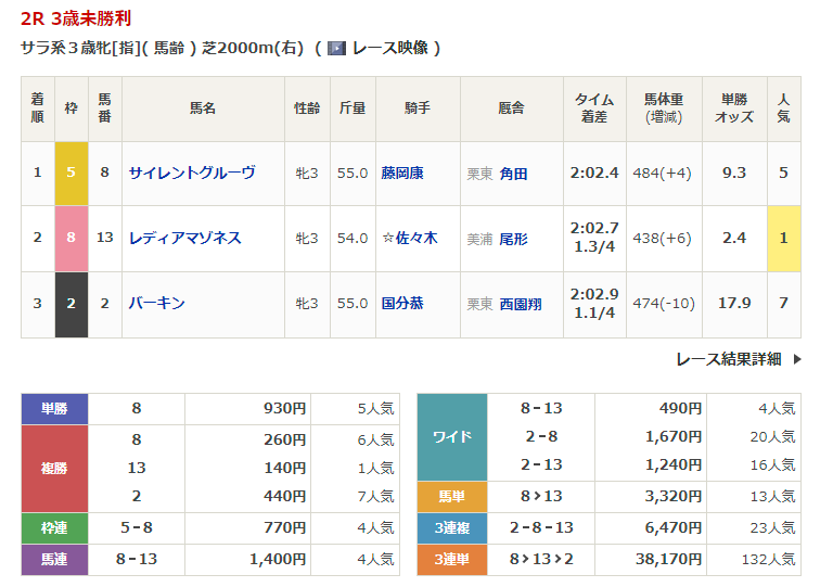 ◎サイレントグルーヴ(5人気)1着 単勝930円、複勝260円