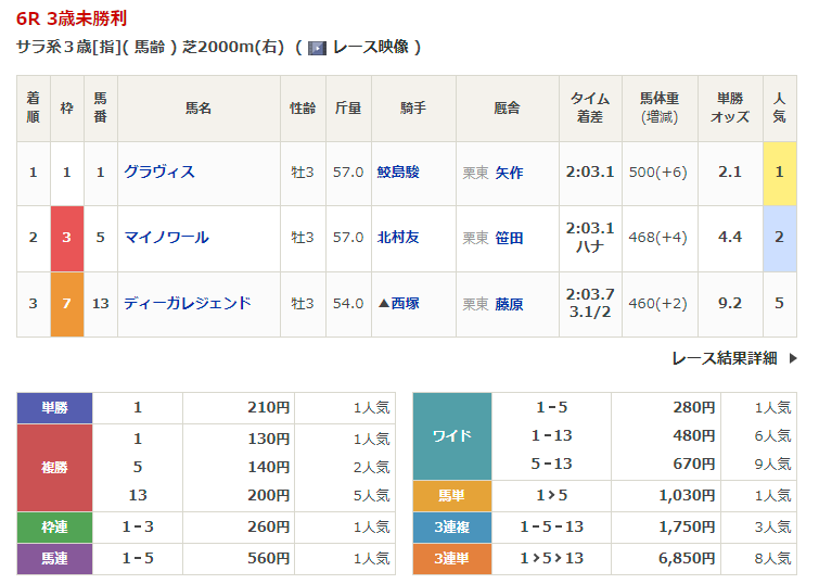 ◎ディーガレジェンド(5人気)3着 複勝200円