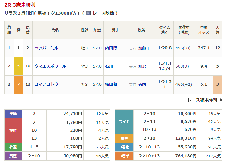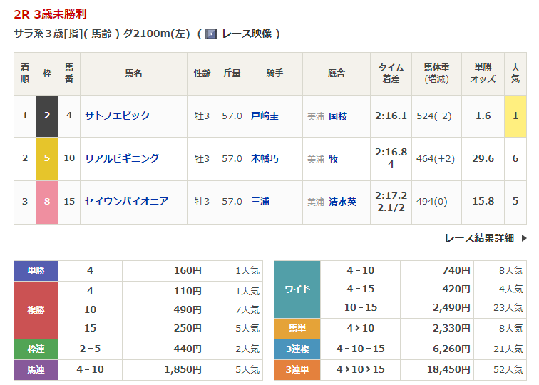 - 2/3【東京2R】3歳未勝利