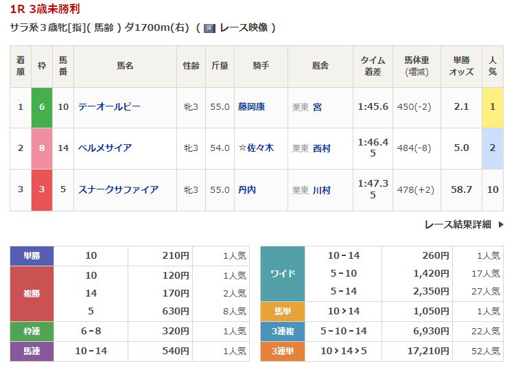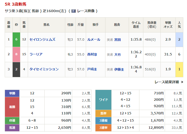 - 2/4【東京5R】3歳新馬