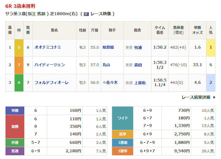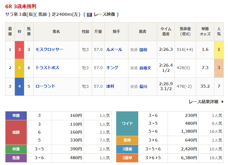 - 2/3【東京6R】3歳未勝利