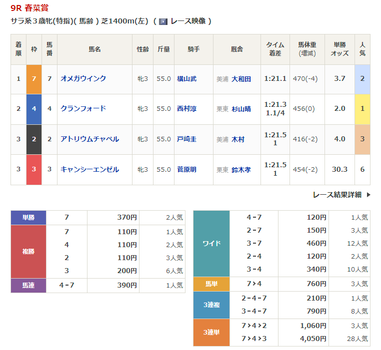 - 2/4【東京12R】4歳以上2勝クラス