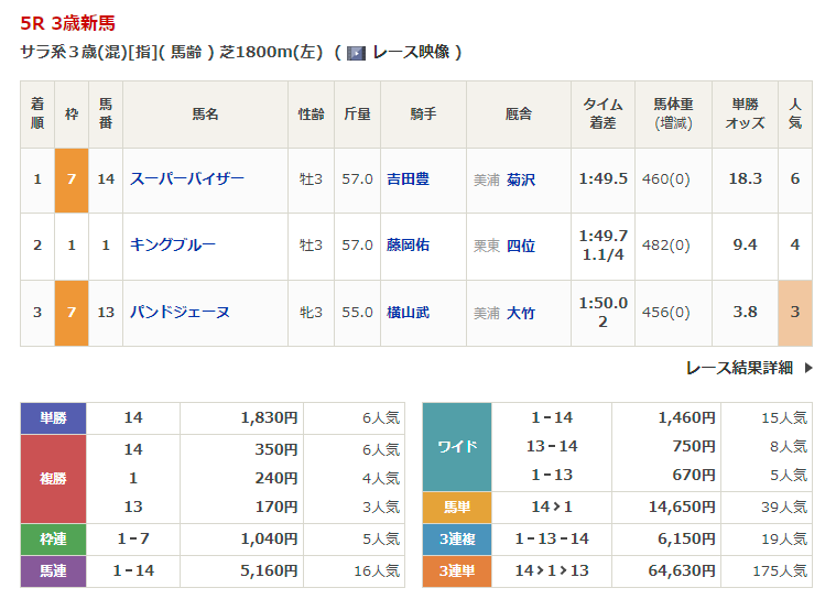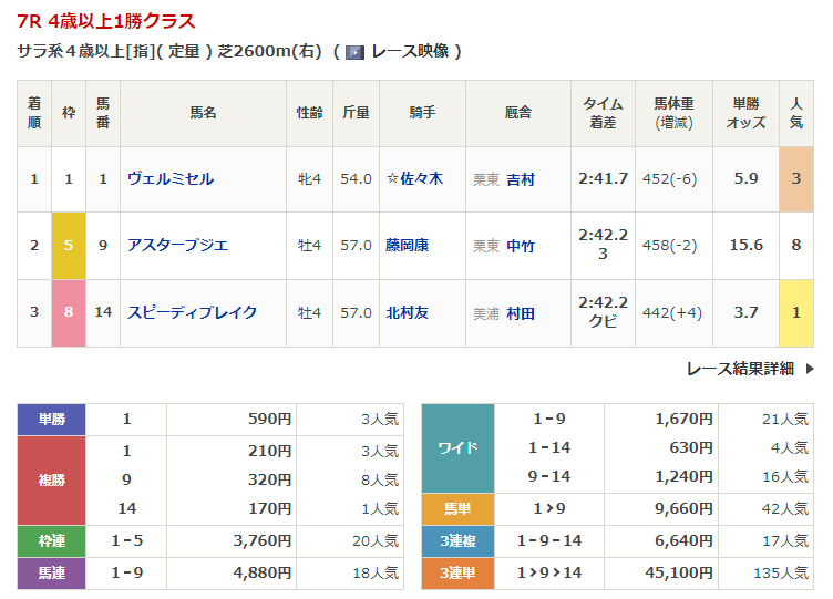 ◎ジョーメッドヴィン(5人気)2着 複勝250円