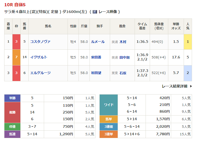 ◎ジューンヨシツネ(5人気)3着 複勝230円