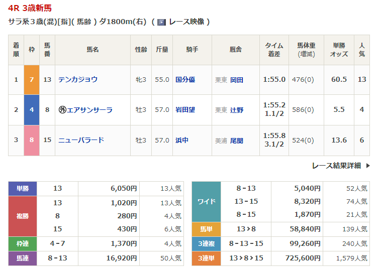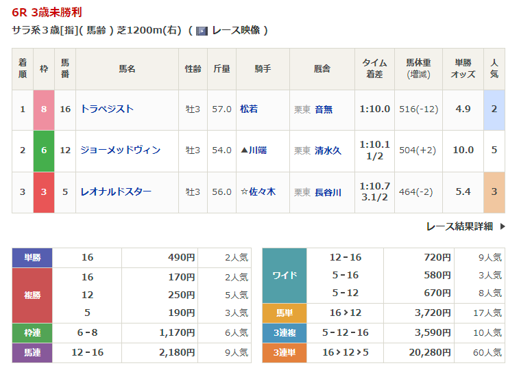 東京競馬の穴馬的中結果