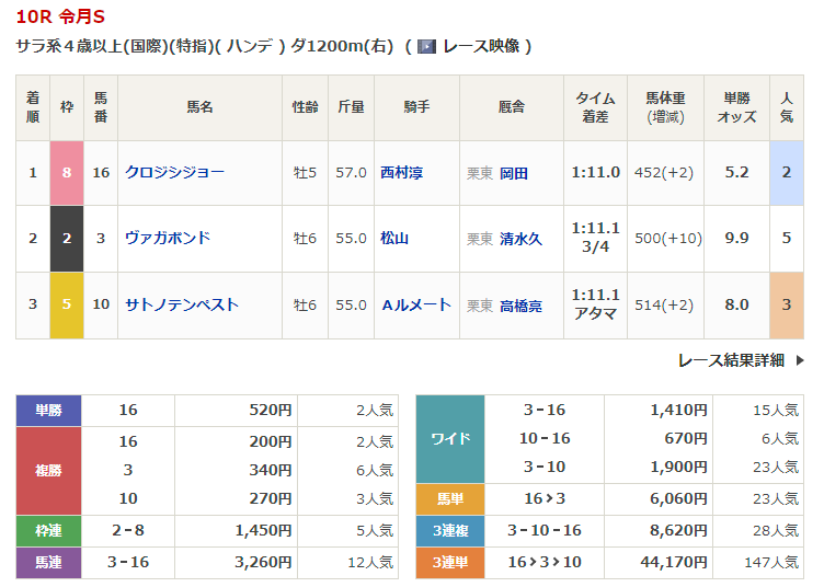 ◎ヴァガボンド(5人気)2着 複勝340円