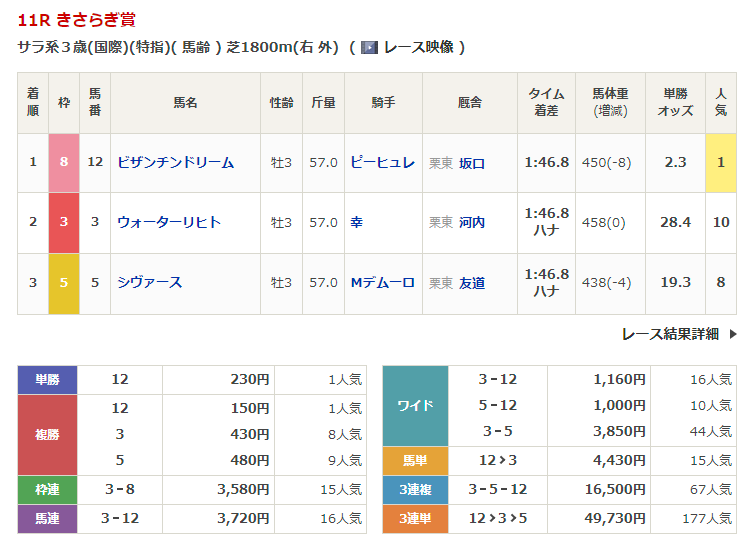 ◎シヴァース(8人気)3着 複勝480円